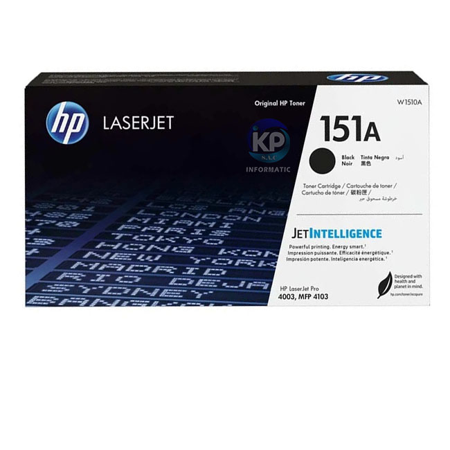 Toner HP 151A(W1510A) Colores de impresión: negro, Tecnología de impresión: Impresión láser, Compatibilidad: Impresoras HP LaserJet Pro 4003dn, 4003dw, 4003n, MFP 4103dw, 4103fdn, 4103fdw, Condición: Nuevo.
