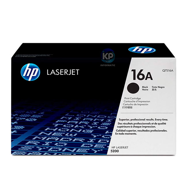 Tóner HP modelo 16A con código Q7516A, Colores de impresión: Negro. Tecnología de impresión: Impresión láser. Compatibilidad: LASERJET 5200, 5200n, 5200tn. Condición: Nuevo.